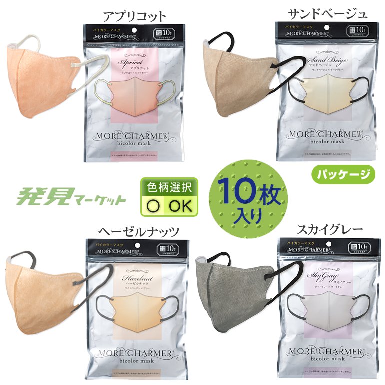 3D立体バイカラーマスク 個包装 10枚入(色選択)