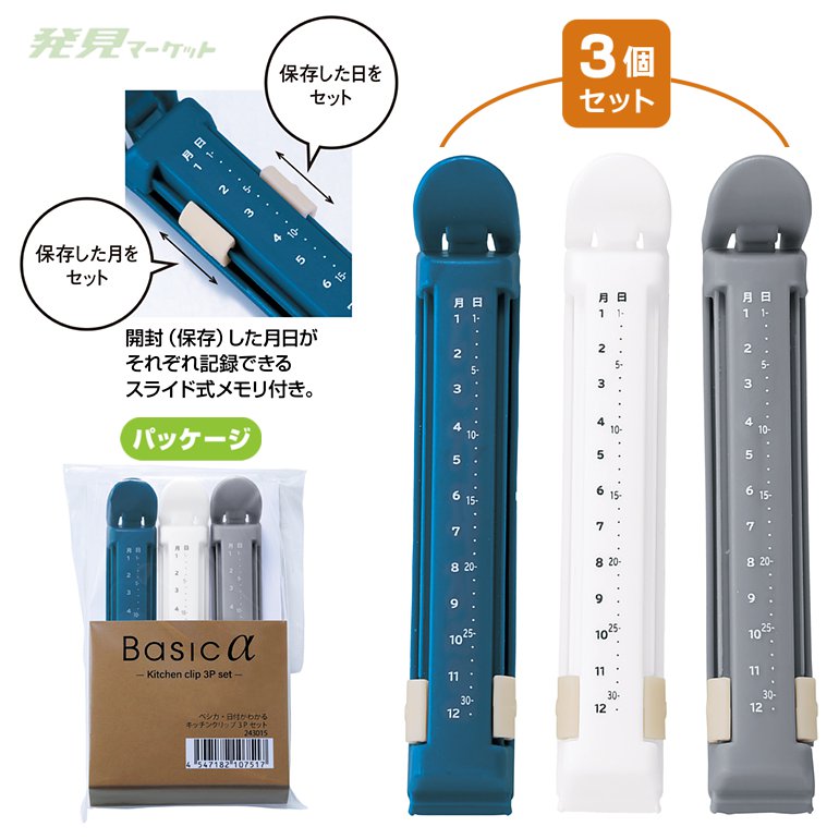 ベシカ・日付がわかるキッチンクリップ3Pセット