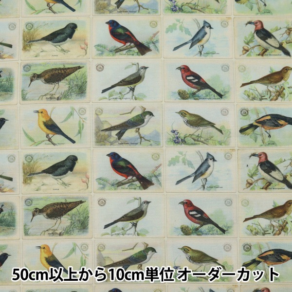 【数量5から】 生地 『ポストカード バード インクジェットプリント 7383-11』