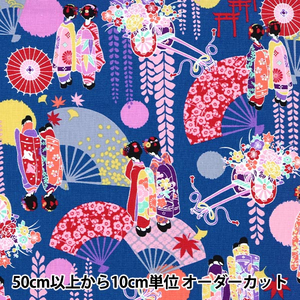 【数量5から】 生地 『シーチング マイコプリント ブルー HR3390-13C』