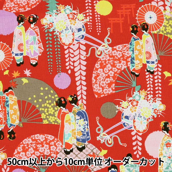 【数量5から】 生地 『シーチング マイコプリント レッド HR3390-13E』