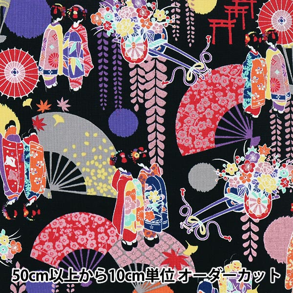 【数量5から】 生地 『シーチング マイコプリント ブラック HR3390-13D』