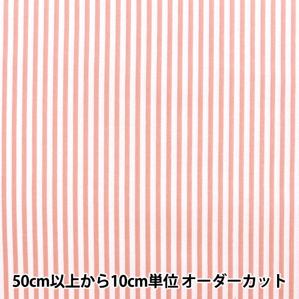 【数量5から】 生地 『シーチングプリント ストライプ コーラル 358-2B』