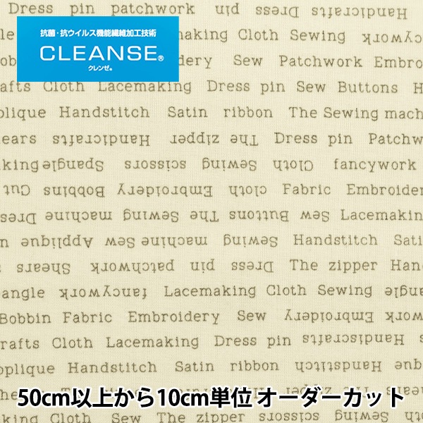 【数量5から】 生地 『抗ウイルス機能繊維CLEANSE®(クレンゼ®) スケア 英字 ホワイト ZE10360L...