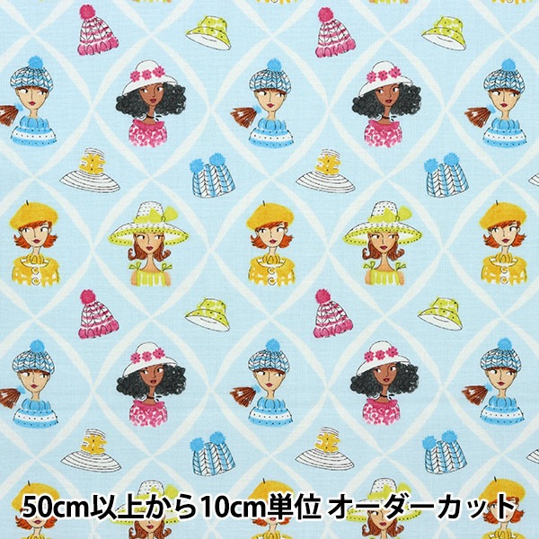 【数量5から】 生地 『USAコットン Happy Hatters ブルー PWAK002XBLUE』