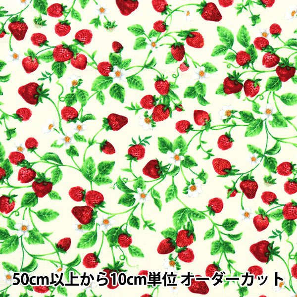 【数量5から】 生地 『USAコットン スモール・ストロベリーズ・オン・バインズ クリーム FRUIT-C1049』