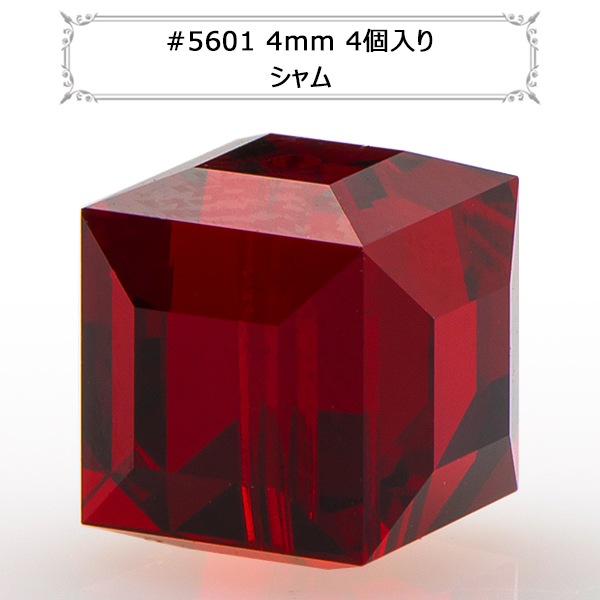 スワロフスキー 『#5601 Cube Bead シャム 4mm 4粒』