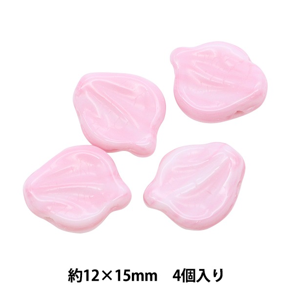 ビーズ 『チェコビーズ リーフ ミルキーローズ 12mm×15mm 4個入り B000556』