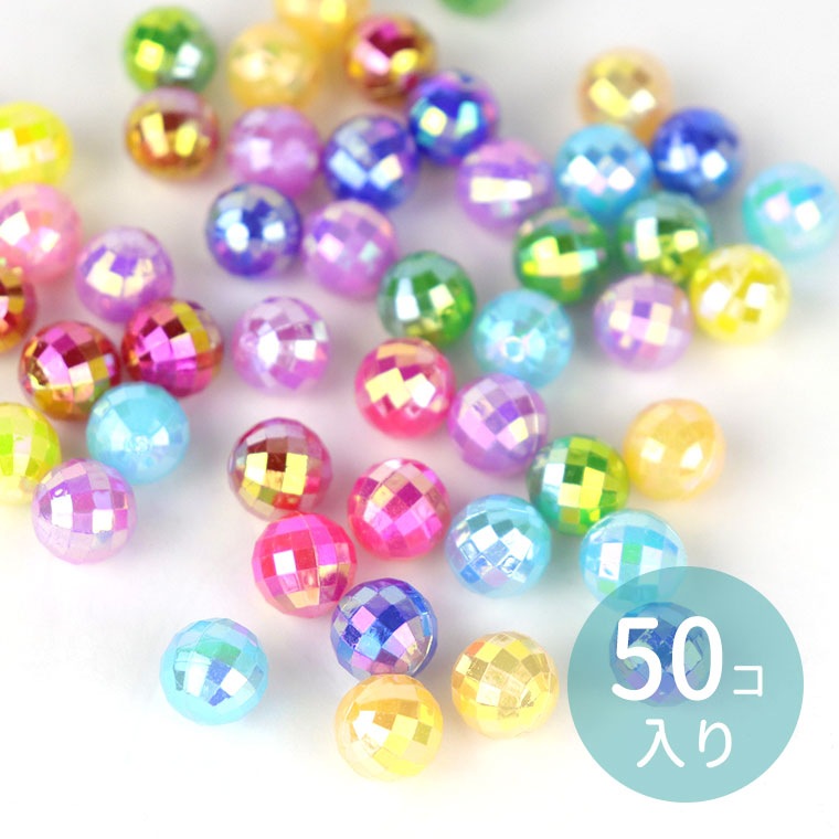 約8mm 50個入 アクリルビーズ ミラーボール アソート 穴なし / キラキラ 丸形 ミックス 無穴 ノンホール MIX 光沢...