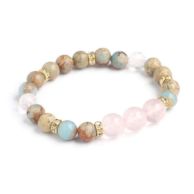 ローズクォーツとインプレッションストーンのブレスレット