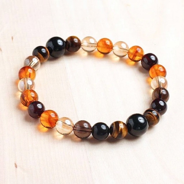 琥珀×タイガーアイ×ガーネットの天然石ブレスレット
