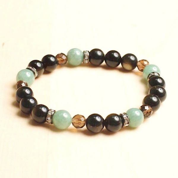 本翡翠と黒曜石のMIXブレスレット