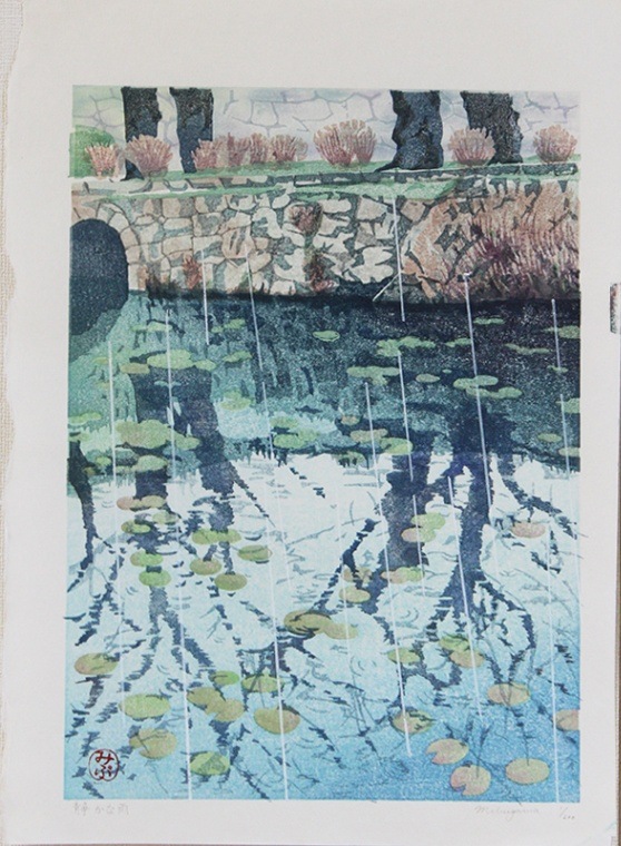 壬生川純一 木版画 静かな雨 ーJunichi Mibugawa Silent rainー