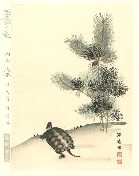 円山応挙 木版画 若松に亀図 Okyo Maruyama Woodcut