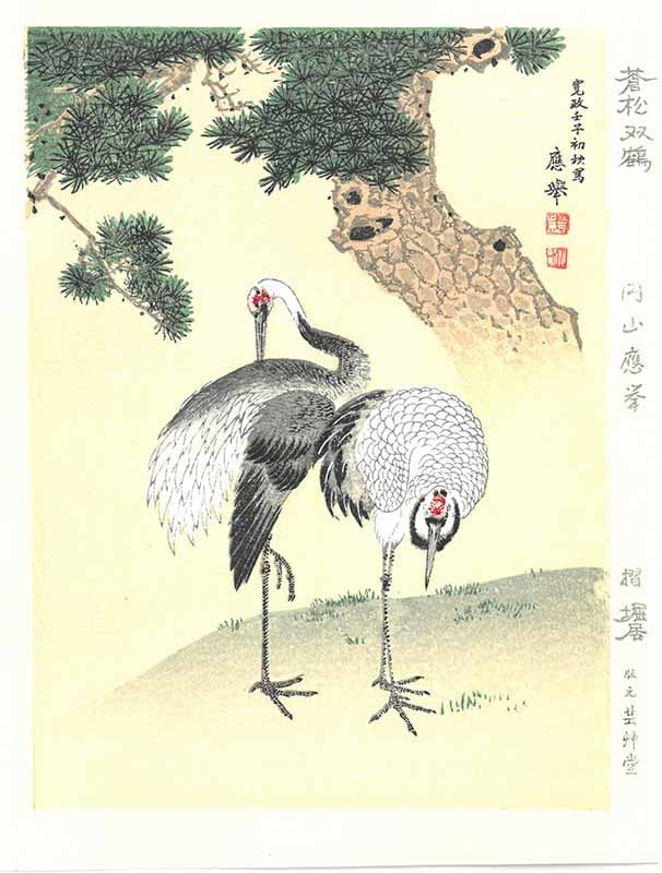 円山応挙 木版画 双鶴図 Okyo Maruyama Woodcut