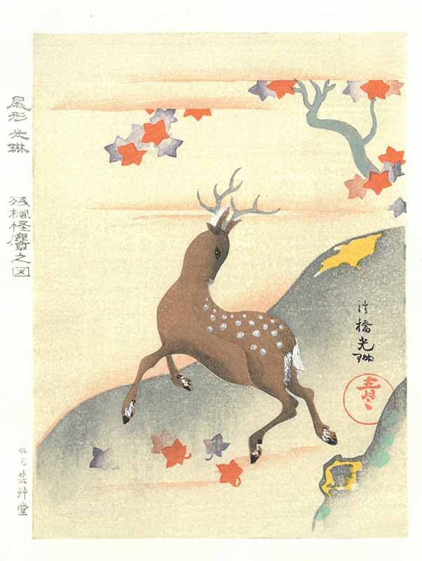 尾形光琳 木版画 残楓怪鹿之図 Korin Ogata Woodblock Print