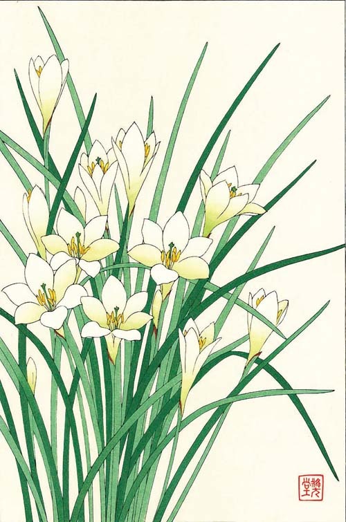 F118 玉すだれ 花版画 Flower Woodcut-Zepher lily-