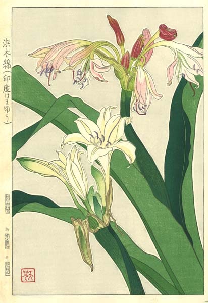 F155 浜木綿 花版画 Flower Woodcut -Beach lily-
