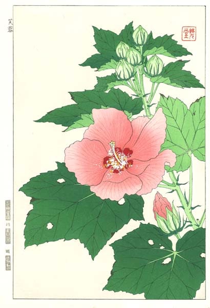 F083 芙蓉 花版画 Flower Woodcut-Hibiscus mutabilis