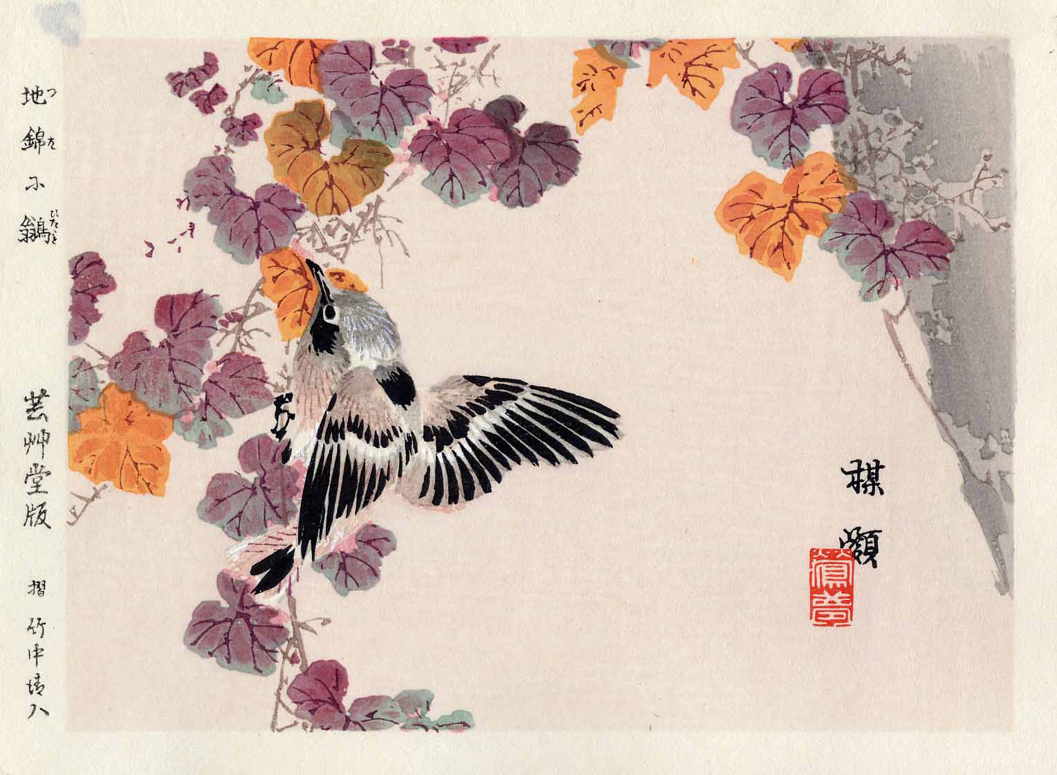 幸野楳嶺 木版画 むくどり Bairei Kono Woodcut Starling