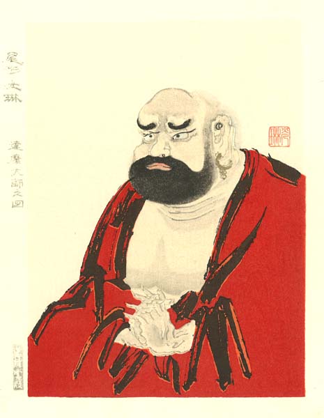 尾形光琳 木版画 達磨大師之図 Korin Ogata Woodblock Print