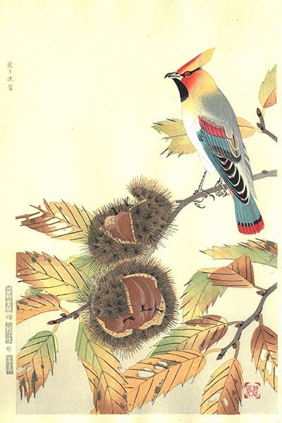 福田翠光木版画 栗と連雀 Suiko Fukuda Woodcutprint