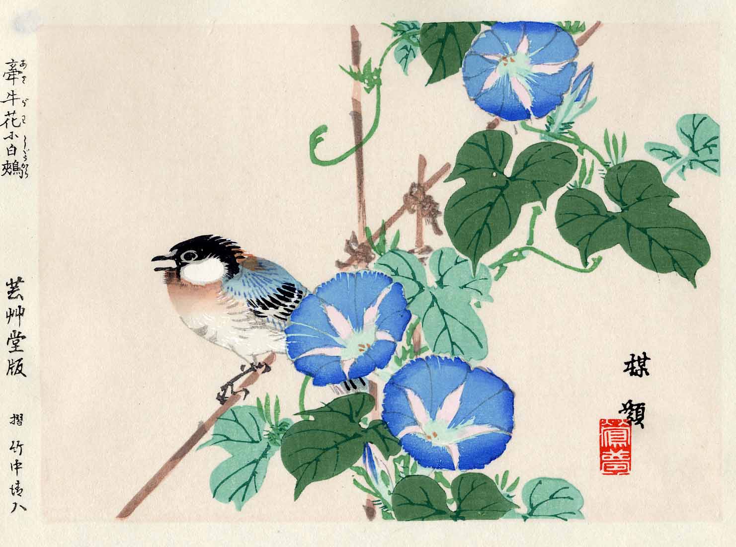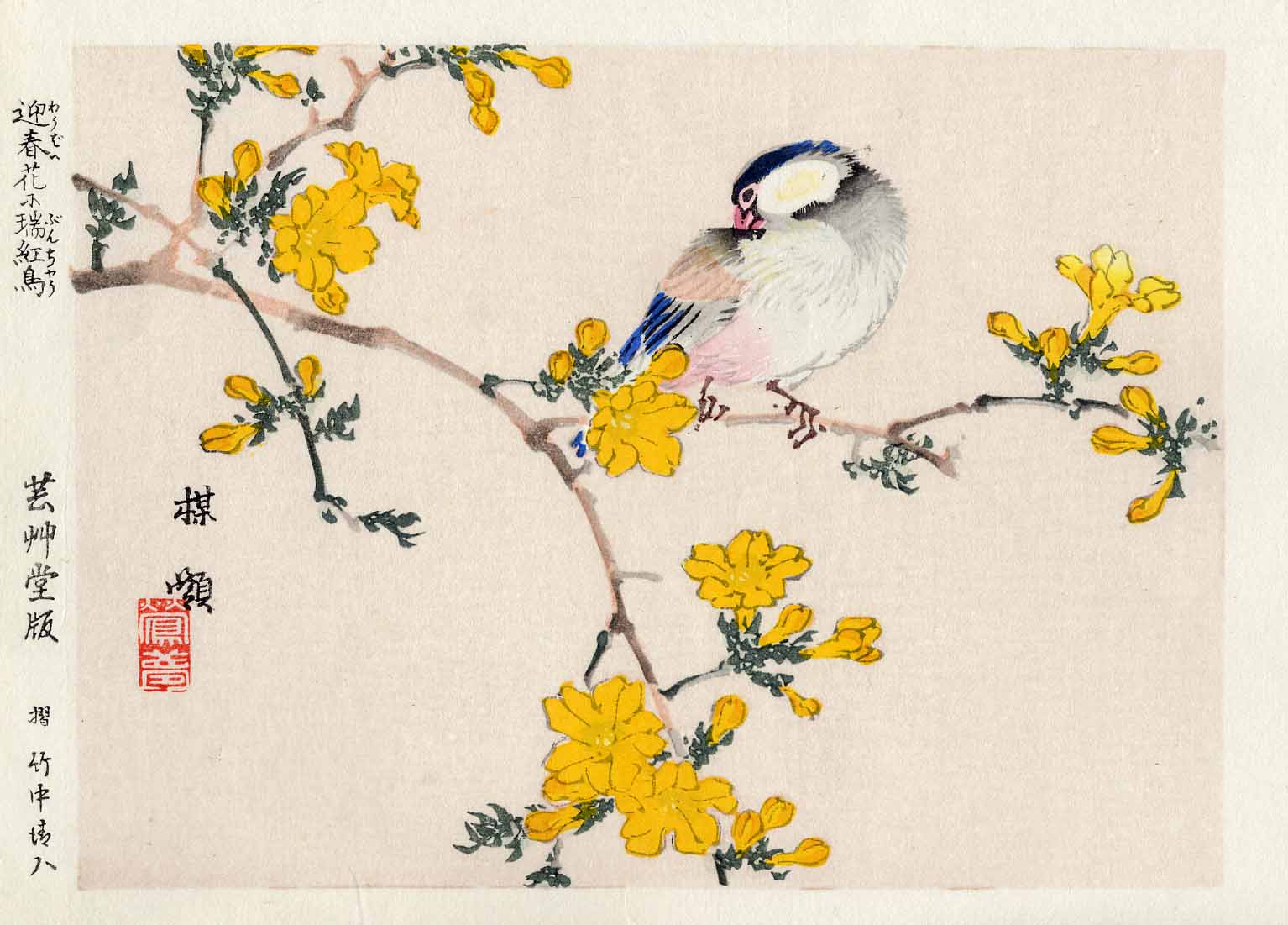 幸野楳嶺 木版画 四十雀 Bairei Kono Woodcut Great Tit