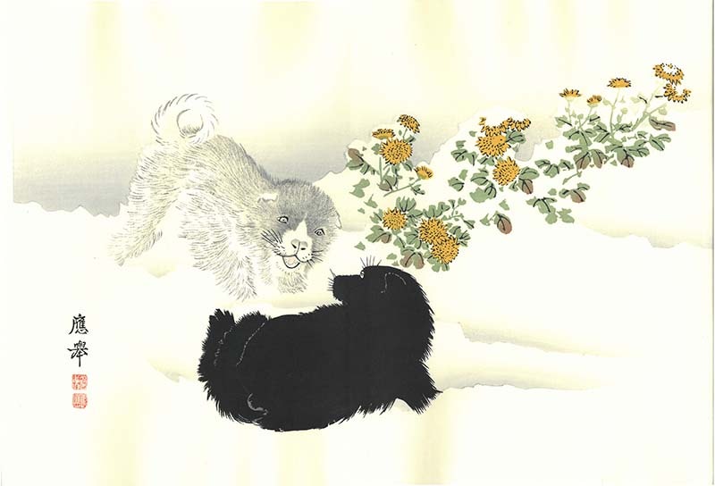 円山応挙 木版画 雪中狗児 Okyo Maruyama Woodcut