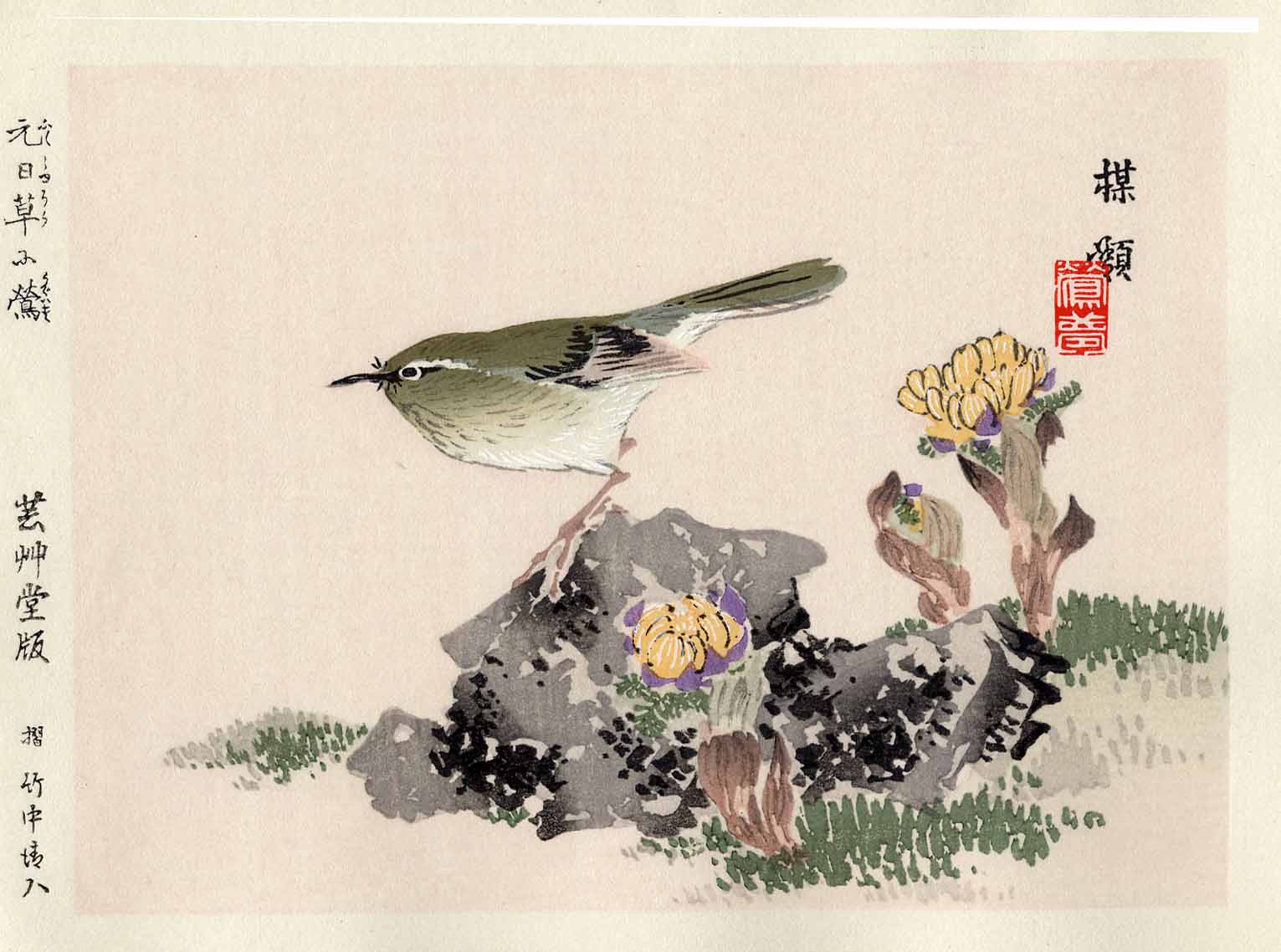 幸野楳嶺 木版画 うぐいす Bairei Kono Woodcut Bush warbler
