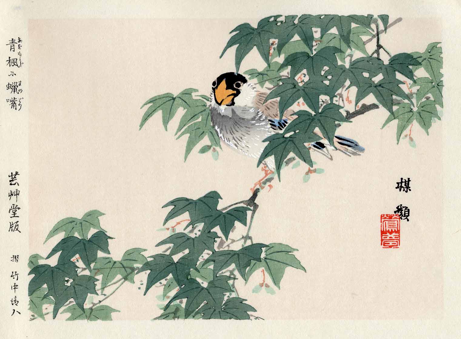 幸野楳嶺 木版画 ぶんちょう Bairei Kono Woodcut Sparrow