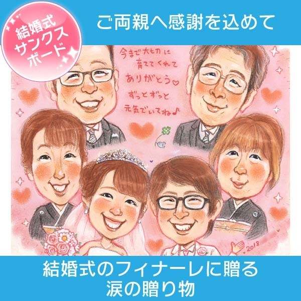 両家の贈呈品として。似顔絵サンクスボードは感動のギフトになります。 一期 お祝い プレゼント 記念 結婚祝い 結婚式 ウェディング...