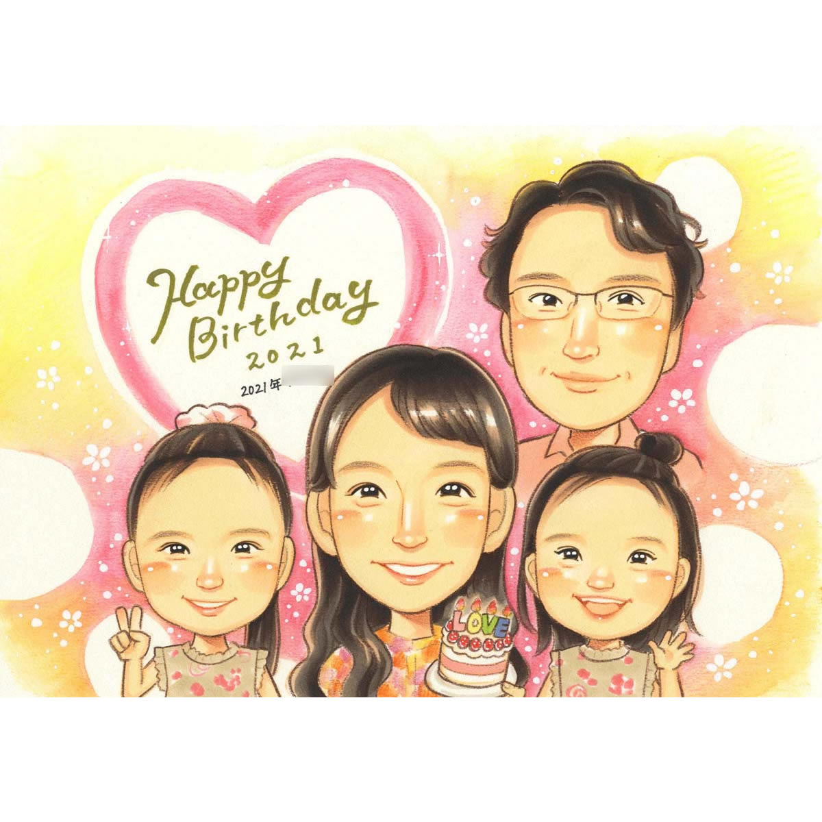 誕生日のプレゼントに 家族 カップル 輝く笑顔のお祝い似顔絵 きよら 写真から似顔絵 贈り物 ギフト 贈呈用 色紙 イラスト おす...