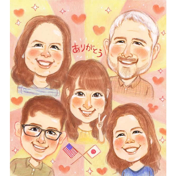 ファミリーの思い出を形にする似顔絵ギフト 家族の絆を描く手書き似顔絵アート 永遠の思い出となる家族似顔絵のサプライズプレゼント 家...