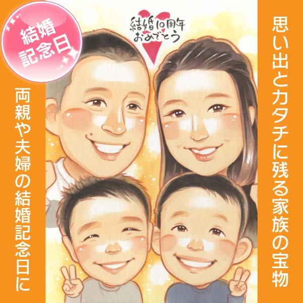 結婚記念日 あたたかな家族の記念似顔絵 贈り物にも きよら 結婚10周年 銀婚式 結婚25周年 真珠婚式 結婚30周年 珊瑚婚式 ...