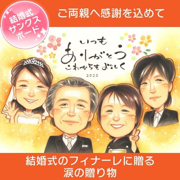 似顔絵サンクスボード ご両親への贈呈セレモニーに感動の似顔絵 結婚式 きよら お祝い プレゼント 記念 結婚祝い 結婚式 ウェディ...