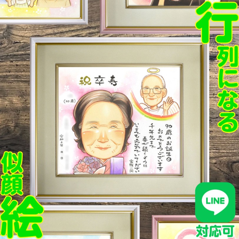 卒寿祝いに贈る感動の手描き似顔絵ギフト 卒寿のお祝いにぴったりな、心温まる手描き似顔絵ギフトです。特別な日を祝うために、一生の宝物...