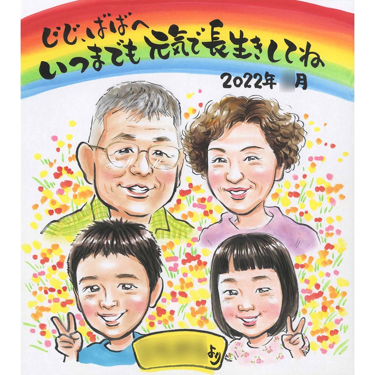 見せびらかしたくなる!家族みんなでお祝いする記念日似顔絵。金婚式(結婚50周年)などの記念日や長寿のお祝いにも 結婚記念日 金婚式...