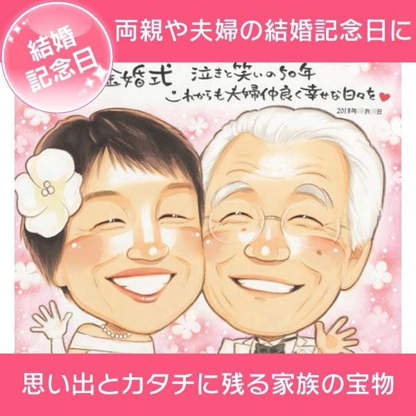 結婚記念日 両親 夫婦 思い出に残る記念似顔絵 きよら 結婚記念日 金婚式 銀婚式 真珠婚式 ダイヤモンド婚式 ルビー婚 両親 父...