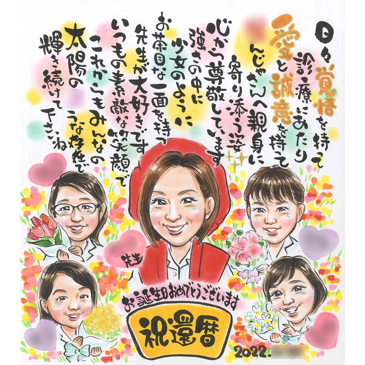 名前詩 を使って唯一無二のお祝い似顔絵に。会社の上司へのプレゼントに喜ばれています!還暦 誕生日 受勲祝い 受賞祝い 創業記念 開...