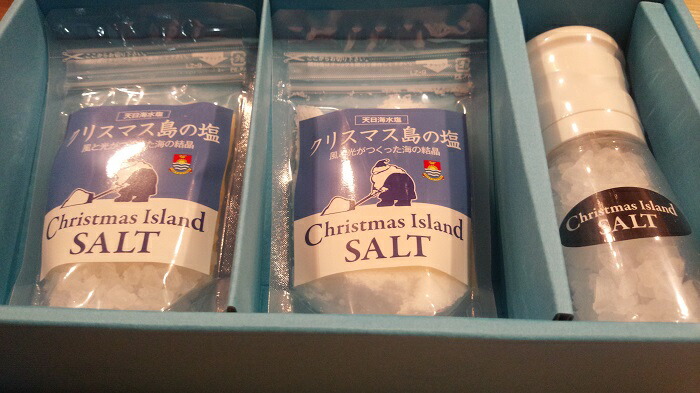 クリスマス島の塩 ギフトセット クリスタル100gミル付き、クリスタル100g、粉末100g