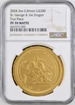 【トライアル・ピース】グレートブリテン 2024年 セントジョージとドラゴン チャールズ3世 2オンス 200ポンド マットプルー...