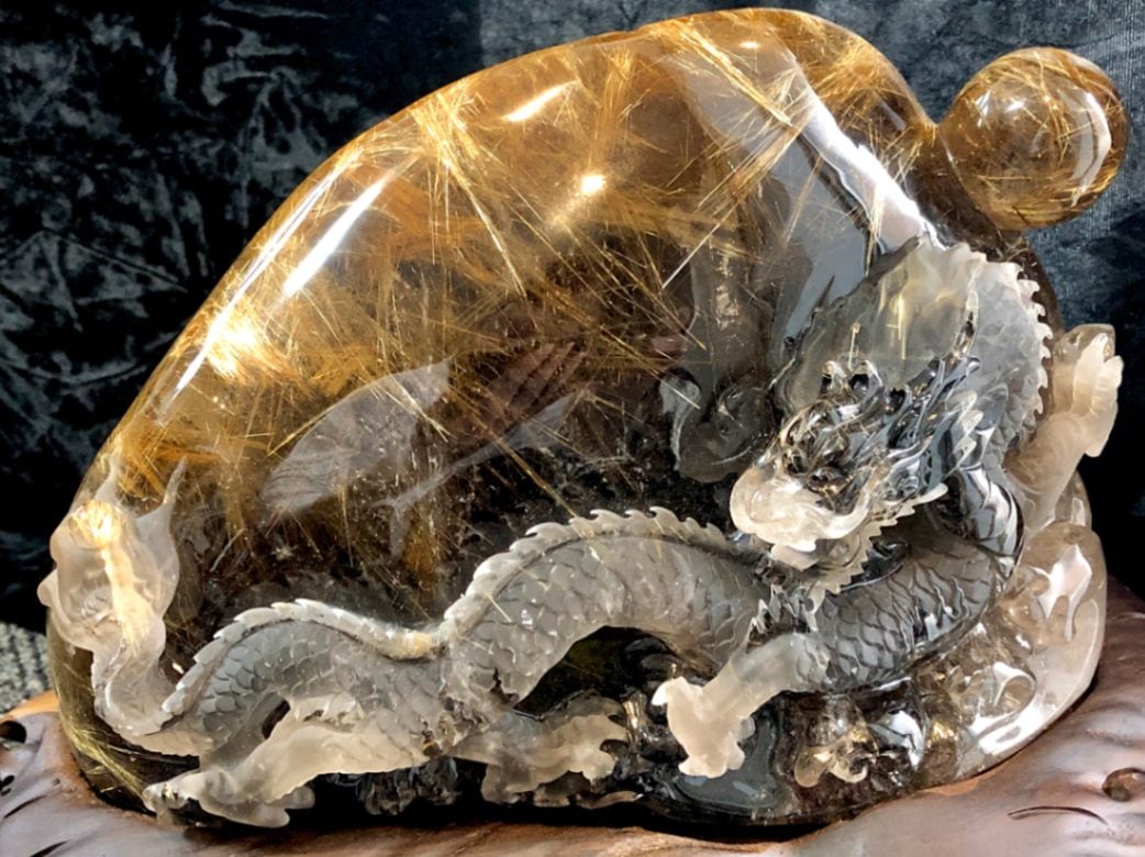 【1点物】激レア!★密集金針★開運、浄化、金運、厄除けに!★天然原石/タイチンゴールドルチルクォーツ龍彫り(太金針水晶/Rutil...