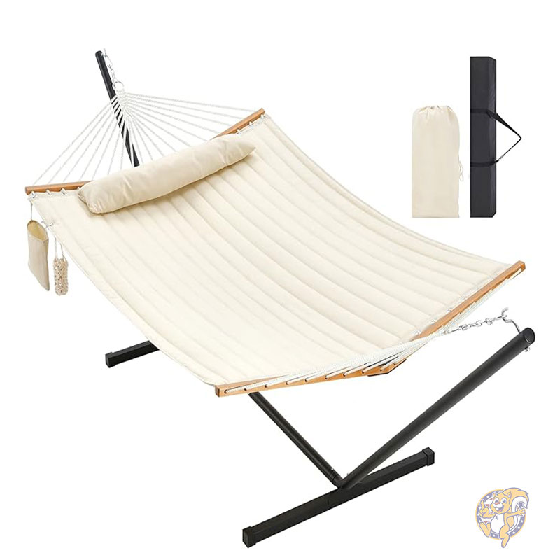 2人用ハンモック ポータブルスチールスタンド付き 大型ダブルハンモック アウトドア Homgava ホムガヴァ