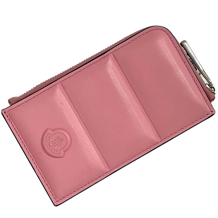 モンクレール コインケース ピンク 美品 小銭入れ カードホルダー レザー 中古 MONCLER L字 ファスナー ロゴ パファー...