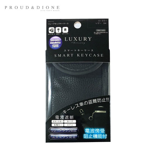 プラウド リレーアタックキーケースレザー ブラック 盗難 電波シャットアウト 車両被害防止 DI-551