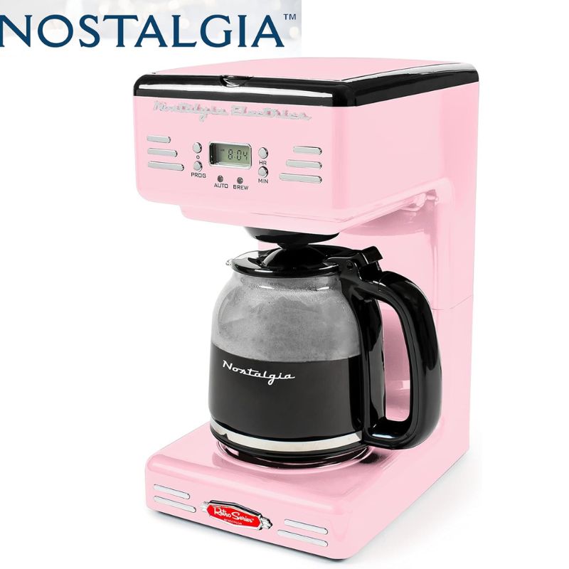 Nostalgia ノスタルジア コーヒーメーカー レトロ ピンク 12カップ LEDディスプレイ付き 自動オフ・保温機能搭載