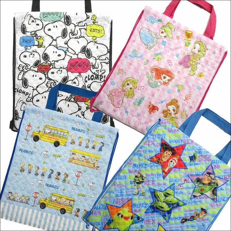 キャラクター キルト レッスンバッグ お稽古バッグ ディズニー ミッキーマウス スヌーピー ミッフィー 30×40cm キルトバッ...
