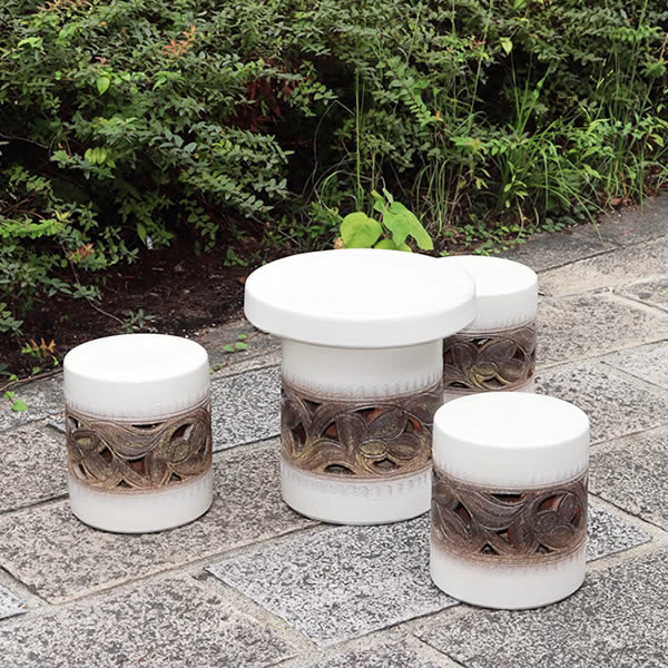 15号白唐草ガーデンテーブルセット 陶器のテーブルセット 信楽焼き 庭園セット 【4点セット】[te-0024]