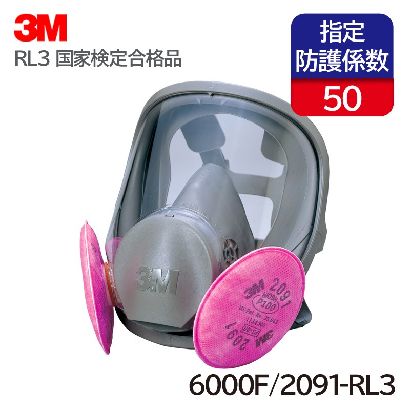 3M 取替え式 防じんマスク 全面形面体 日本 国家検定合格 6000F/2091-RL3 (粉塵 作業用 アスベスト ダイオキシ...