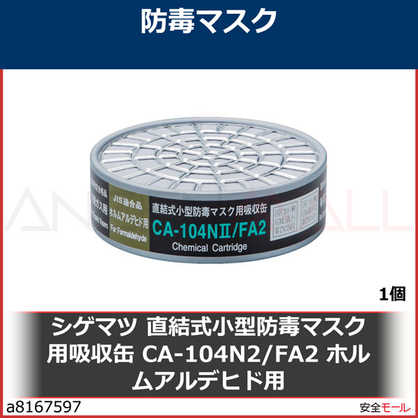 シゲマツ 直結式小型防毒マスク用吸収缶CA-104N2/FA2ホルムアルデヒド用 CA-104N2/FA2